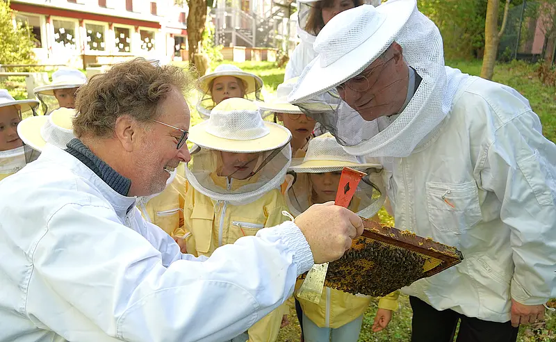 Die Klasse 3a hat den Erzbischof in eine Sachunterrichtsstunde eingeladen, in der es um das Thema Berufe ging. Mit der 1c ging es danach in den Schulgarten zum Bienenstock, wo unser Bienenpfleger Henning Bartsch die Bienen und Waben zeigte und Spannendes zum Thema Honigbienen erzählte. Mit einem Glas Honig machte sich Dr. Stefan Heße nach diesem abwechslungsreichen Besuch wieder auf den Weg zurück zum Dom.