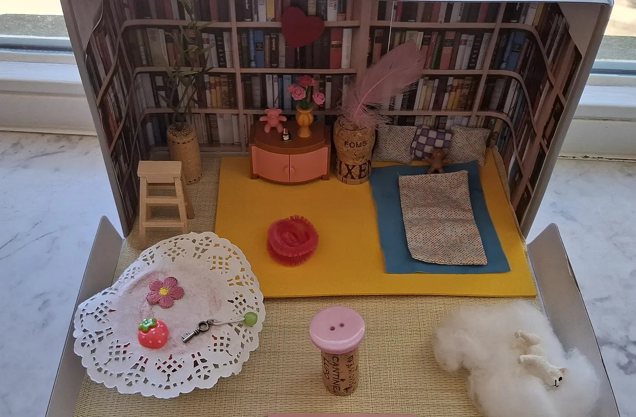 Eine 3. Klasse hat im Rahmen einer “Literaturwoche” ein Buch gemeinsam gelesen, eine Bücherhalle besucht und diese anschließend in einem Schuhkarton nachgebaut. Kinder einer Parallelklasse durften sich selbst Themen aussuchen, dies recherchieren, aufbereiten und der Klasse präsentieren.