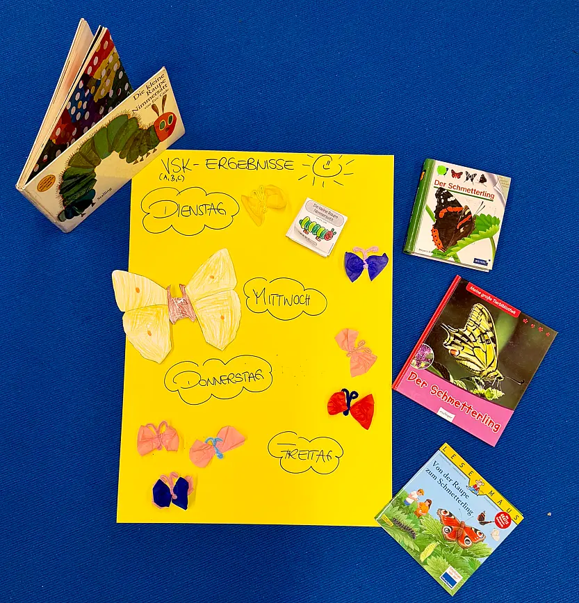 In der vergangenen Woche war in unserem Schulgebäude und auf dem Schulhof mächtig was los: Die Vorschulklassen haben sich mit dem Wachstum und der Schönheit von Schmetterlingen beschäftigt und in den ersten Klassen standen Haustiere auf dem Programm sogar mit dem Besuch eines Schulhundes und einem Plakat über das eigene Lieblingstier.