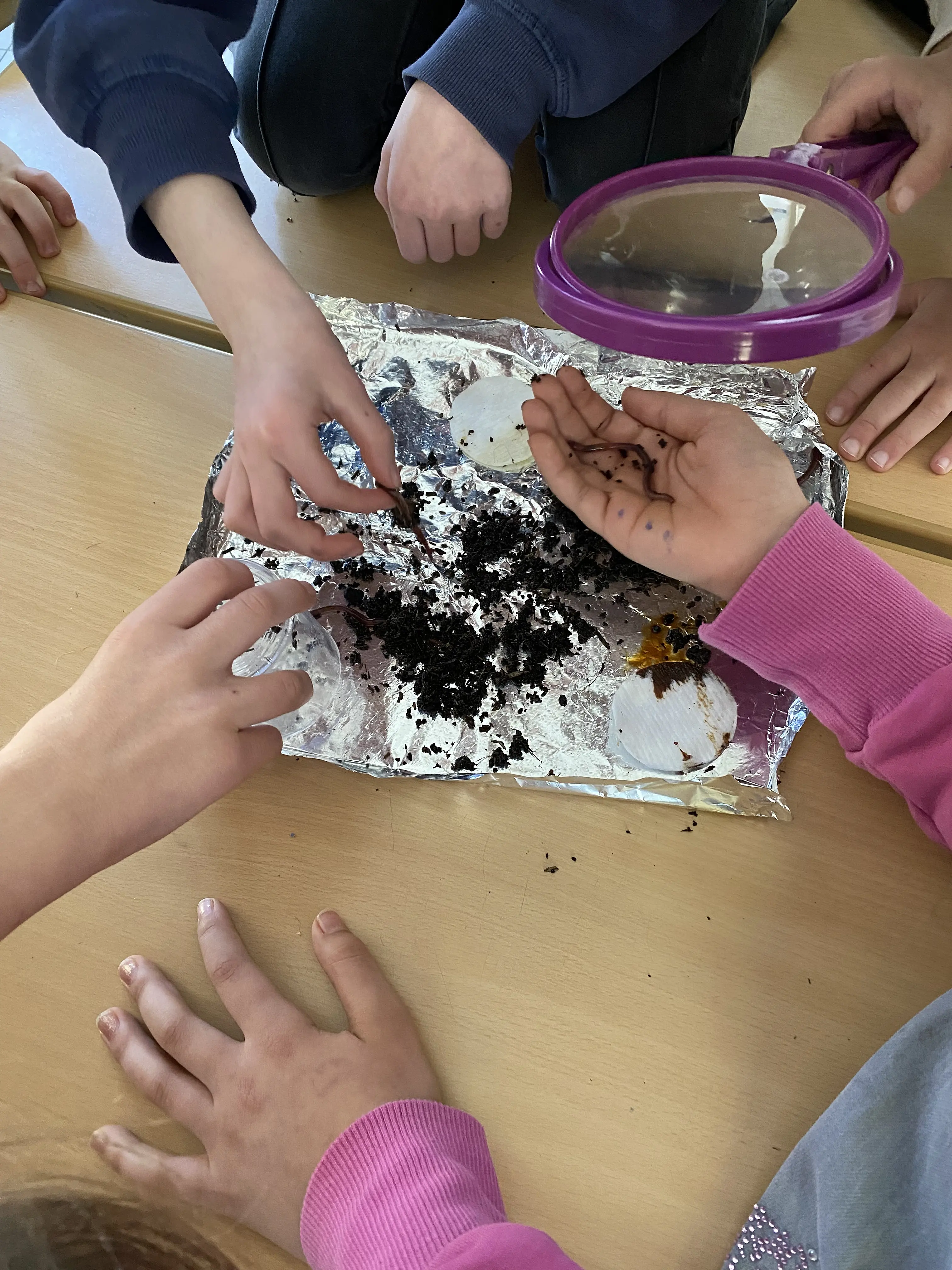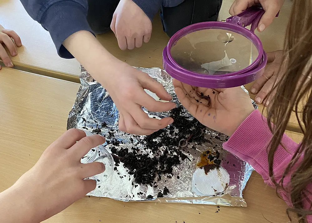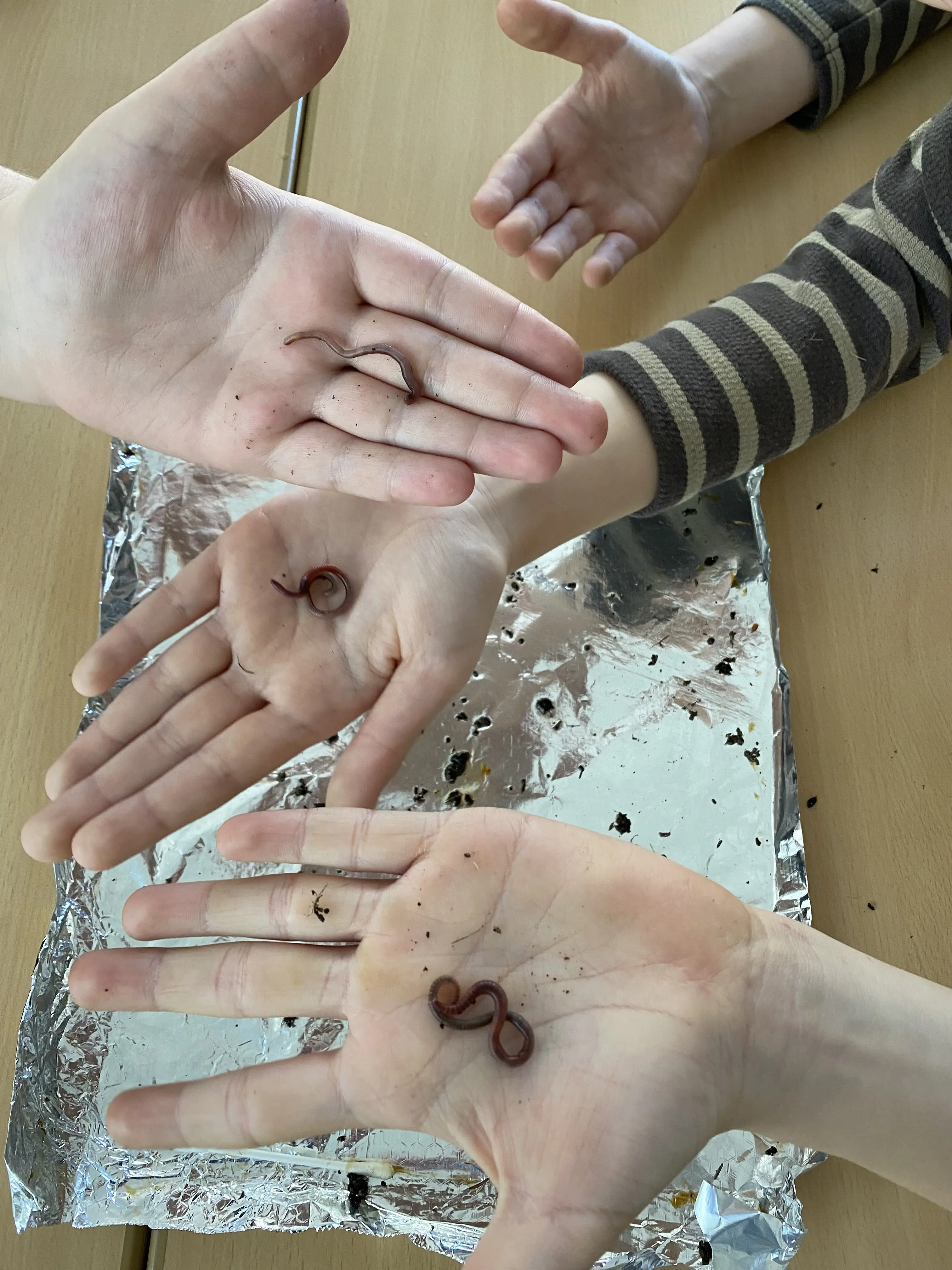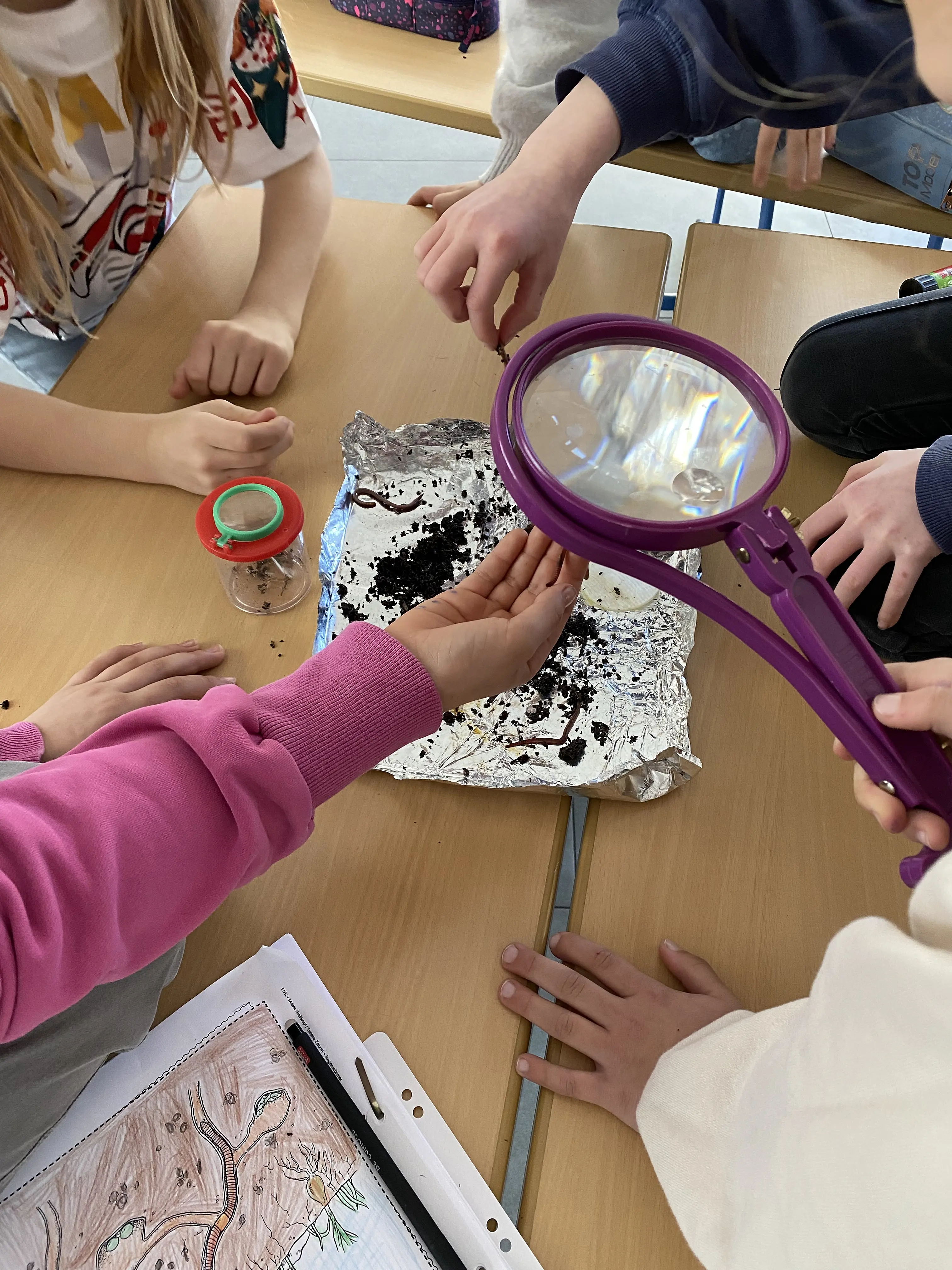 Ein weiterer Schwerpunkt des Projekts war die Bedeutung der Regenwürmer für den Boden. Die Schülerinnen und Schüler beobachteten den von den Würmern produzierten Humus und erkannten, wie wichtig dieser für die Fruchtbarkeit der Erde ist. Sie lernten, dass Regenwürmer abgestorbene Pflanzenteile zersetzen und dadurch den Boden verbessern.
